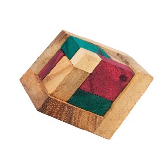 Ένας ξύλινος κατασκευαστικός γρίφος με 9 κομμάτια ξύλου ανόμοια μεταξύ τους, τόσο κατασκευαστικά, όσο και χρωματικά, μέσα σε μια ξύλινη βάση σε σχήμα ρόμβου.