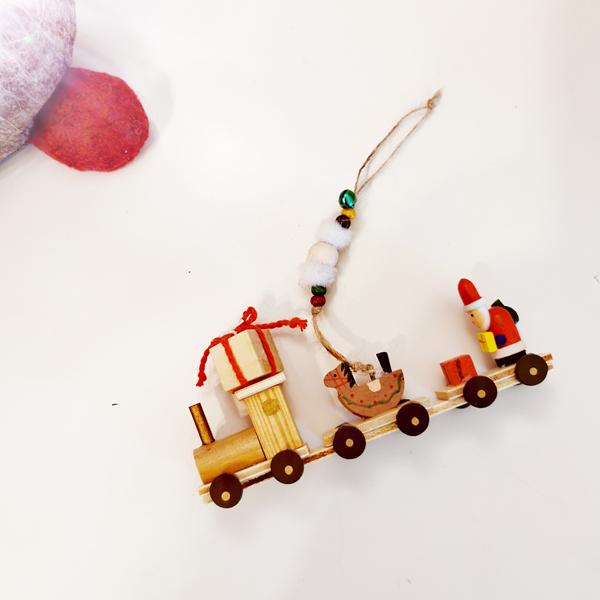 Τρενάκι κρεμαστό με χάντρες, κουδουνάκι και pon pon! Ho ho ho!