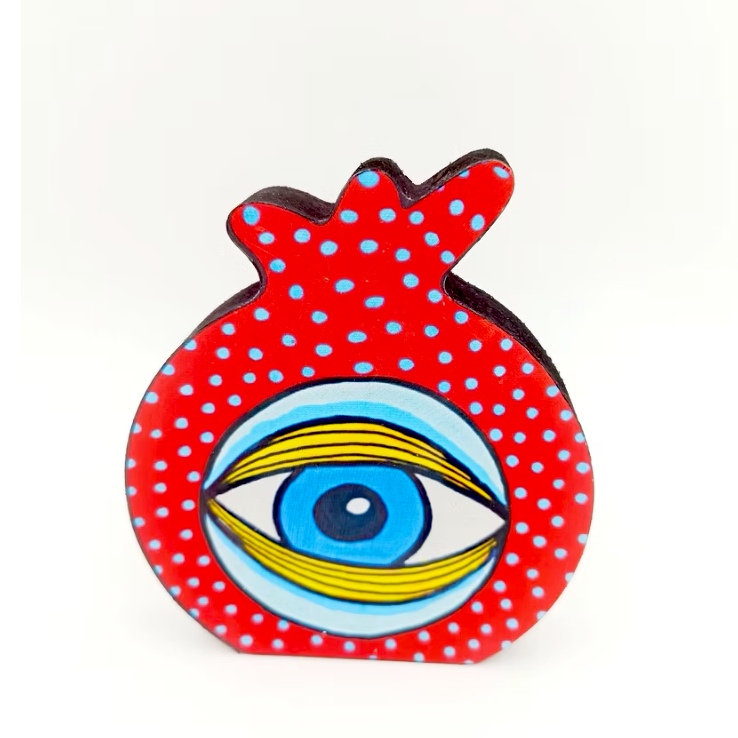 Γούρι ρόδι ξύλινο φτιαγμένο στο χέρι μ’ ένα μεγάλο μάτι για να μοιράσει σκέψεις θετικές και χαρά τη νέα αυτή χρονιά! Ένα γούρι ρόδι κόκκινο με λευκό πουά!